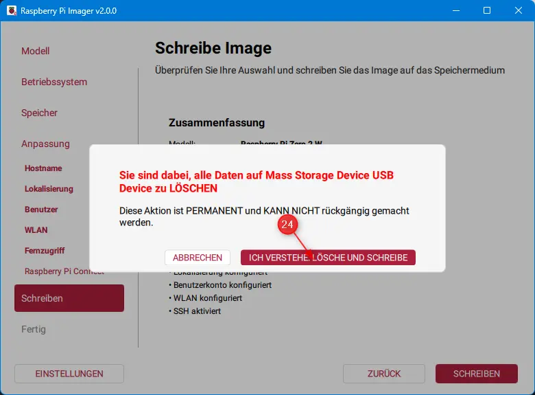 Nach einer Weile ist der Schreibvorgang beendet und du siehst noch einmal eine Zusammenfassung, was genau alles ausgewählt wurde bzw. gerade passiert ist.